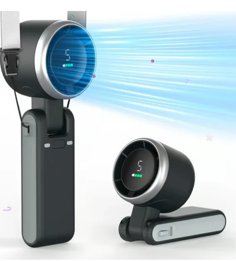 •Vent Turbo à cinq vitesses : Personnalisez votre refroidissement avec cinq niveaux de vitesse ajustables ! D'une légère brise à un vent fort, ce ventilateur à main vous permet de trouver le flux d'air parfait pour chaque situation. Restez au frais, partout et à tout moment !