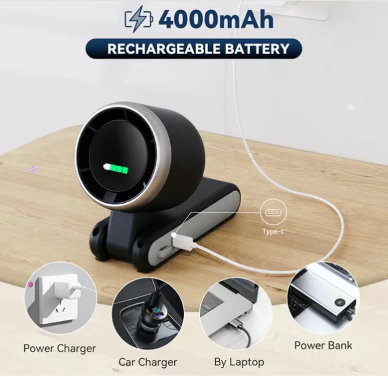 •Autonomie de Batterie Extra-Longue : Restez au frais pendant jusqu'à 10 heures avec ce ventilateur rechargeable par USB ! Compatibles avec les ports USB, les ordinateurs portables, les batteries externes et les chargeurs de voiture – assurez une expérience de charge sans faille où que vous soyez. Fini les soucis de batterie !